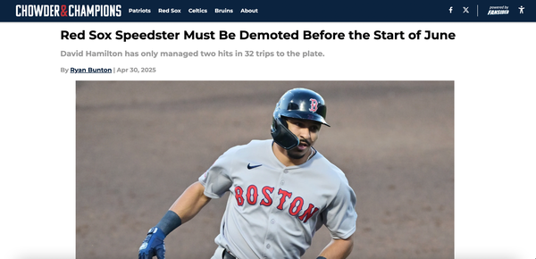 Chowder and Champions • April 30th, 2025 Red Sox Speedster Must Be Demoted Before the Start of June David Hamilton has only managed two hits in 32 trips to the plate.