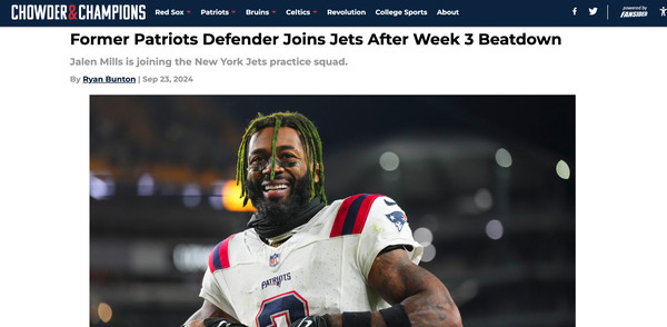 Chowder and Champions • September 23rd, 2024 Former Patriots Defender Joins Jets After Week 3 Beatdown Jalen Mills is joining the New York Jets practice squad.