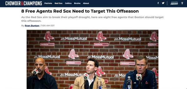 Chowder and Champions • November 19th, 2024 8 Free Agents Red Sox Need to Target This Offseason As the Red Sox aim to break their playoff drought, here are eight free agents that Boston should target this offseason.