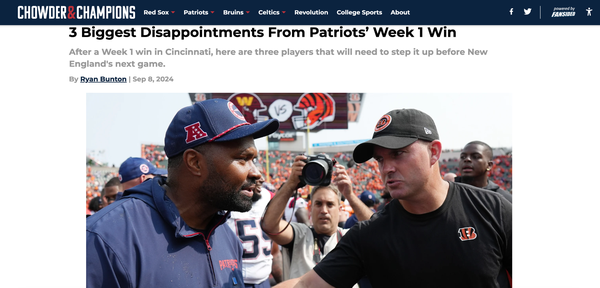 Chowder and Champions • September 8th, 2024 3 Biggest Disappointments From Patriots’ Week 1 Win After a Week 1 win in Cincinnati, here are three players that will need to step it up before New England's next game.