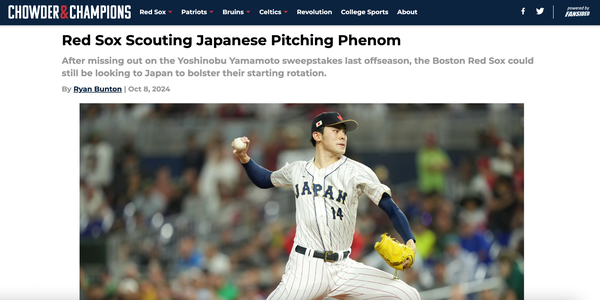 Chowder and Champions • October 9th, 2024 Red Sox Scouting Japanese Pitching Phenom After missing out on the Yoshinobu Yamamoto sweepstakes last offseason, the Boston Red Sox could still be looking to Japan to bolster their starting rotation.