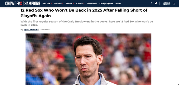Chowder and Champions • September 30th, 2024 12 Red Sox Who Won't Be Back in 2025 After Falling Short of Playoffs Again With the first regular season of the Craig Breslow era in the books, here are 12 Red Sox who won't be back in 2025.